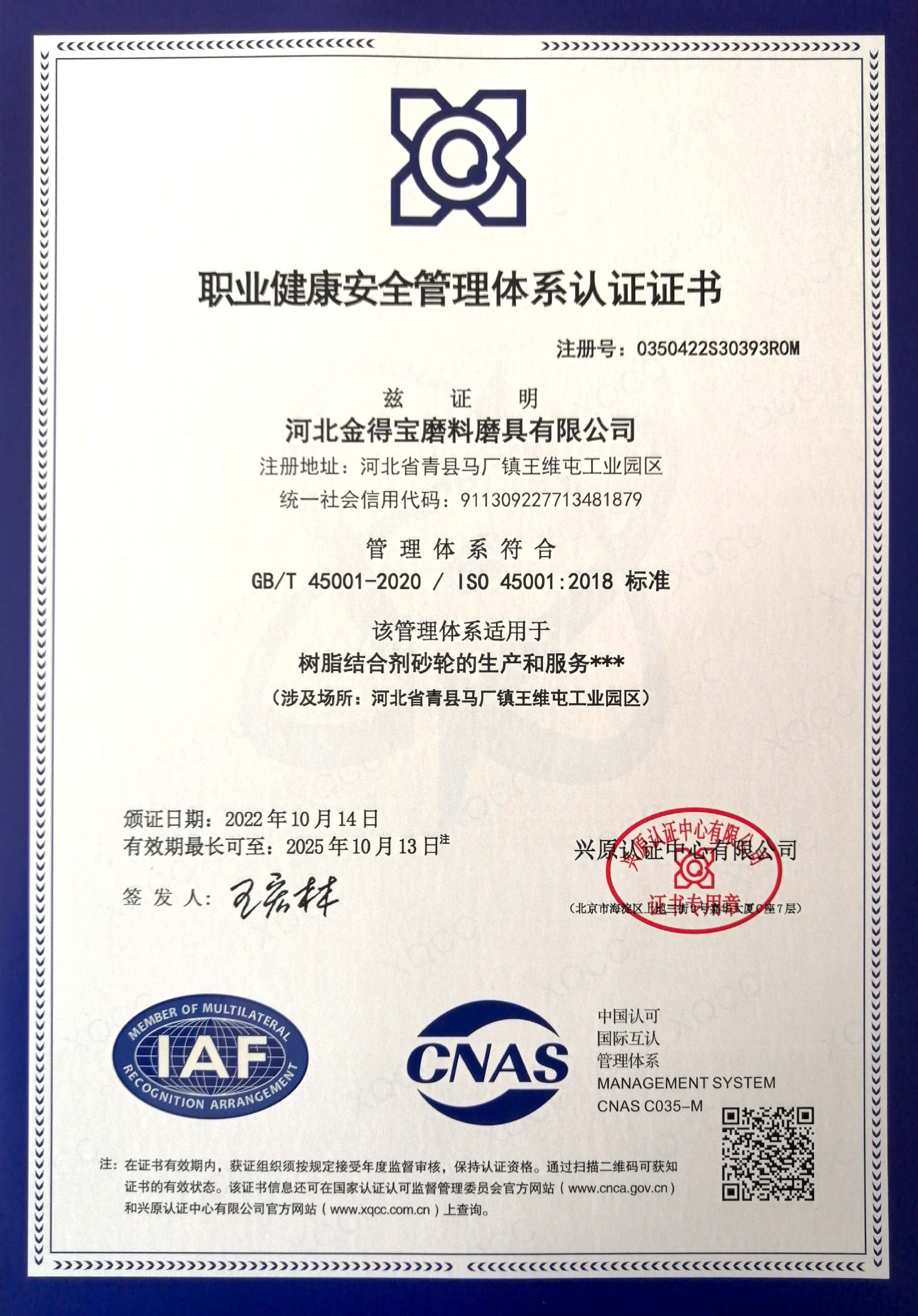 職業(yè)健康安全管理體系認(rèn)證證書 -
